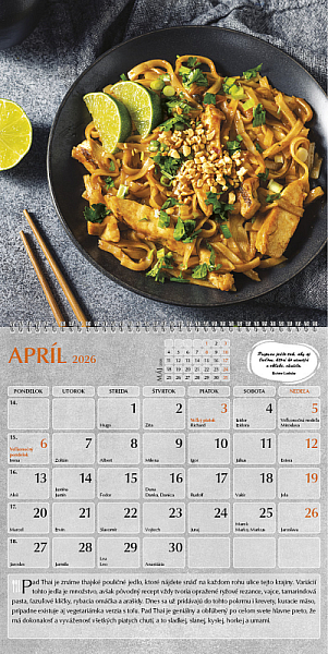 Objavte každý mesiac novú kulinársku inšpiráciu! Gourmet kalendár 2026 prináša 12 nádherných fotografií jedál z rôznych kútov sveta doplnených o pútavé zaujímavosti, fakty a historky zo sveta kulinárstva. Ideálny darček pre všetkých milovníkov jedla, kultúry a cestovania.
