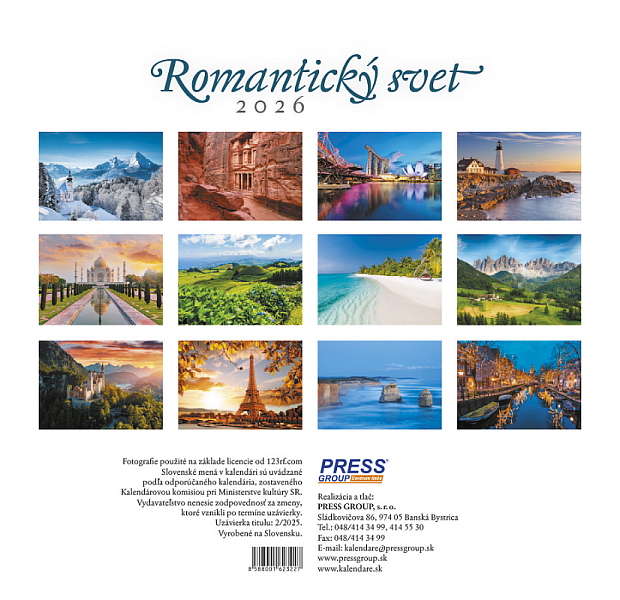 Nástenný kalendár Romantický SVET 2026