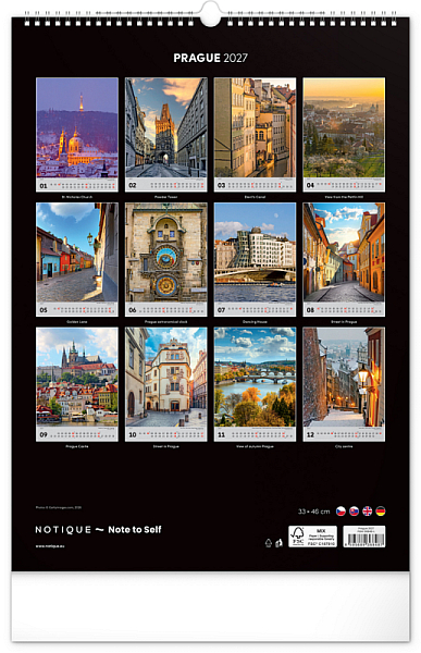 NOTIQUE Nástenný kalendár Praha CZ 2027, 33 x 46 cm