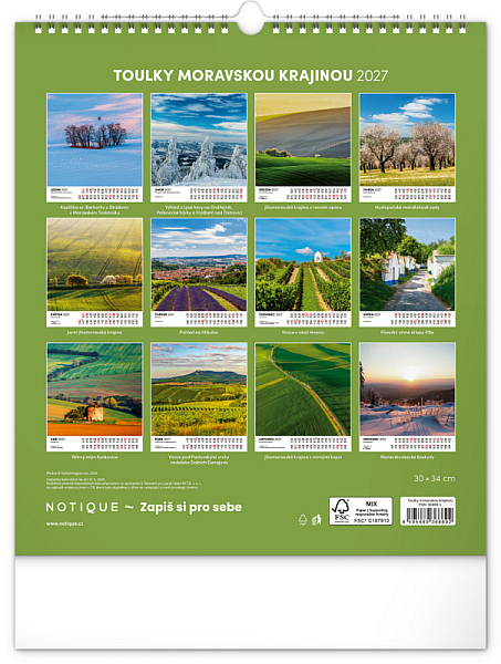 NOTIQUE Nástenný kalendár Potulky moravskou krajinou CZ 2027, 30 x 34 cm